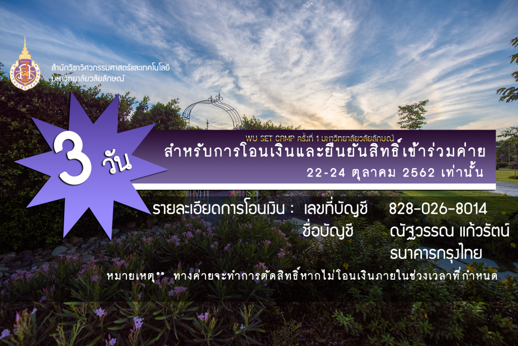 สำหรับผู้สมัครเข้าร่วมกิจกรรม “WU SET CAMP#1̶ […]