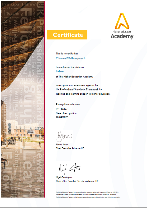 สำนักวิชาวิศวกรรมศาสตร์และเทคโนโลยี ขอแสดงความยินดีกับ อาจารย์ ดร. ชิระวัฒน์ วัฒนพานิช อาจารย์หลักสูตรวิศวกรรมคอมพิวเตอร์และระบบอัจฉริยะ ซึ่งเป็นส่วนหนึ่งในอาจารย์มหาวิทยาลัยวลัยลักษณ์ ที่ผ่านหลักสูตรอบรม UKPSF ซึ่งการได้รับการรับรองในระดับ Fellow ตามมาตรฐานของ The United Kingdom Professional Standards Framework (UKPSF) ประเทศอังกฤษ เป็นระบบการจัดการเรียนการสอนที่ได้มาตรฐานสากลและเป็นที่นิยมใช้กันโดยทั่วไปทั้งนี้กรอบมาตรฐานวิชาชีพระดับอุดมศึกษา UKPSF ได้ถูกพัฒนาโดย The Higher Education Academy (HEA) หรือ Advance HE ในปัจจุบัน ซึ่งเป็นหน่วยงานอิสระระดับชาติในสหราชอาณาจักร เป็นกรอบที่มหาวิทยาลัยวลัยลักษณ์นำมาใช้เพื่อพัฒนาคุณภาพของอาจารย์ให้เป็นคณาจารย์มืออาชีพและมีการจัดการเรียนการสอนอย่างมีคุณภาพได้มาตรฐานสากล