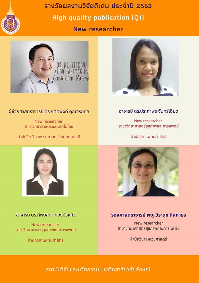 มหาวิทยาลัยวลัยลักษณ์ ขอแสดงความยินดีกับนักวิจัยดีเด่น ประจำปี พ.ศ.2563 ทั้ง 3 ประเภท คือ ประเภท ที่ 1 High quality publication (Q1) ประเภทที่ 2 Research productivity (Scopus/ISI) และประเภทที่ 3 International collaboration Q1 และ Q2