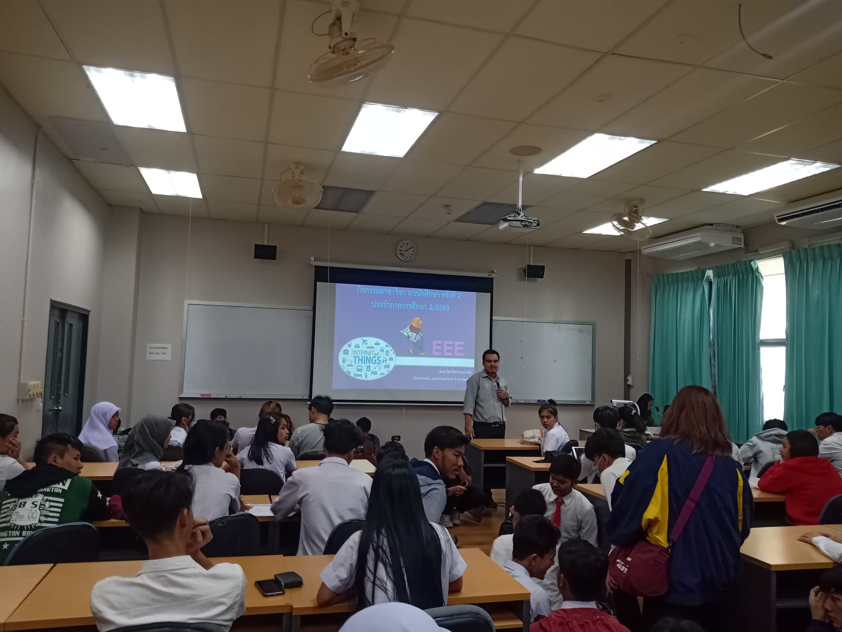 ในวันพุธ ที่ 9 ธันวาคม 2563 หลักสูตรวิศวกรรมไฟฟ้า จัดกิจกรรมคณาจารย์ที่ปรึกษาทางวิชาการพบนักศึกษา ครั้งที่ 2 ประจำภาคการศึกษา ที่ 2/2563 ณ อาคารเรียนรวม 7216 ซึ่งกิจกรรมครั้งนี้เป็นการเตรียมความพร้อมในการลงทะเบียนเรียนประจำภาคการศึกษาที่ 3/2563 ตลอดจนสำรวจปัญหา แลกเปลี่ยนเรียนรู้การใช้ชีวิตในช่วงภาคการศึกษา ที่ 2/2563 ที่เกิดขึ้น ดังนั้นจึงได้สำรวจความต้องการของนักศึกษาเพื่อจะขอสำรองที่นั่งในรายวิชาศึกษาทั่วไป โดยการจัดกิจกรรมคั้งนี้มีวัตถุประสงค์ คือ (1) เพื่อลดการตกออกของนักศึกษา (2) เพื่อพัฒนาผลการเรียนของนักศึกษาให้ดีขึ้น สามารถจบการศึกษาตามแผนการศึกษา (3) เพื่อกระตุ้นให้นักศึกษาในหลักสูตรของสำนักวิชามีแนวความคิดและทัศนคติในการการมองโลกเชิงบวก (4) เพื่อให้นักศึกษาสามารถแก้ปัญหาที่ประสบอยู่ได้อย่างมีประสิทธิภาพ และเพื่อให้นักศึกษาและอาจารย์ที่ปรึกษา ได้พูดคุยในบรรยายกาศที่เป็นกันเองจะทำให้รับทราบข้อมูลด้านการเรียนของนักศึกษาแต่ละบุคคลในเชิงลึก