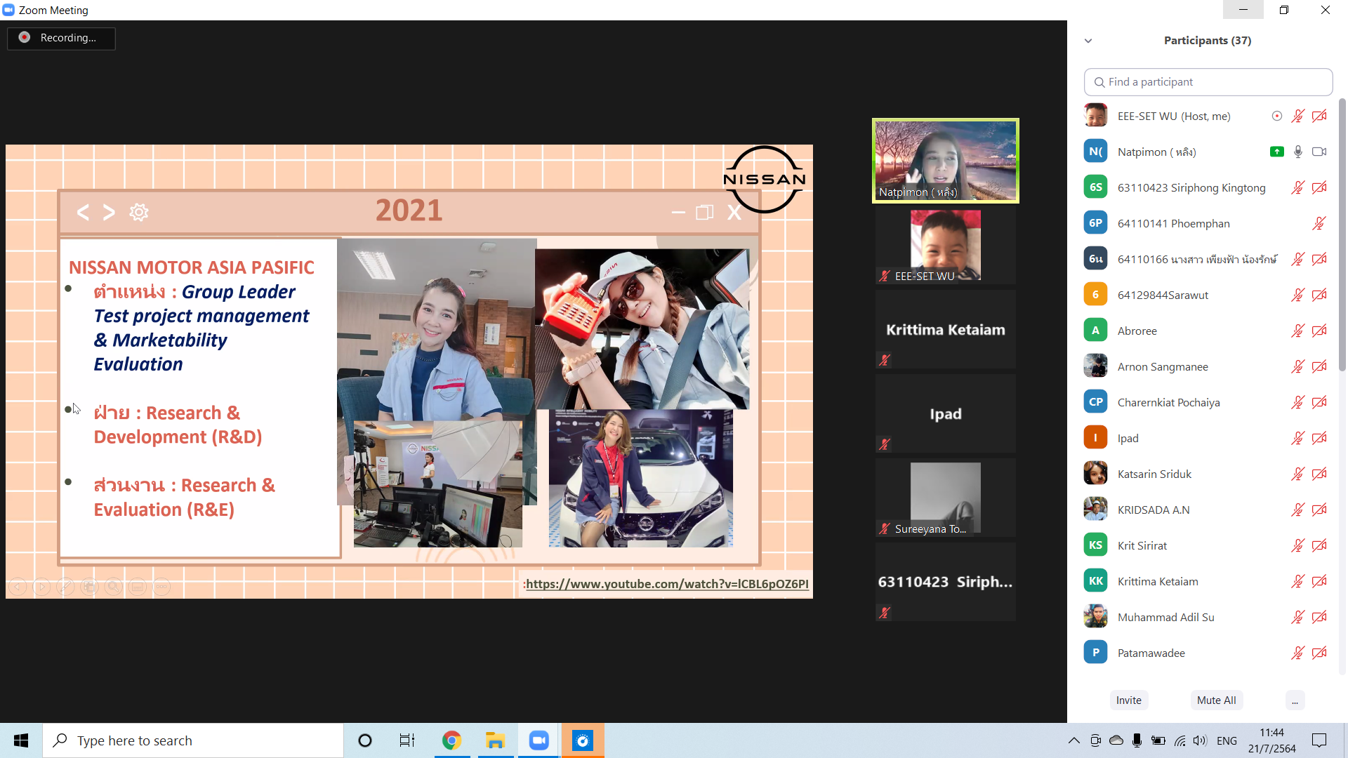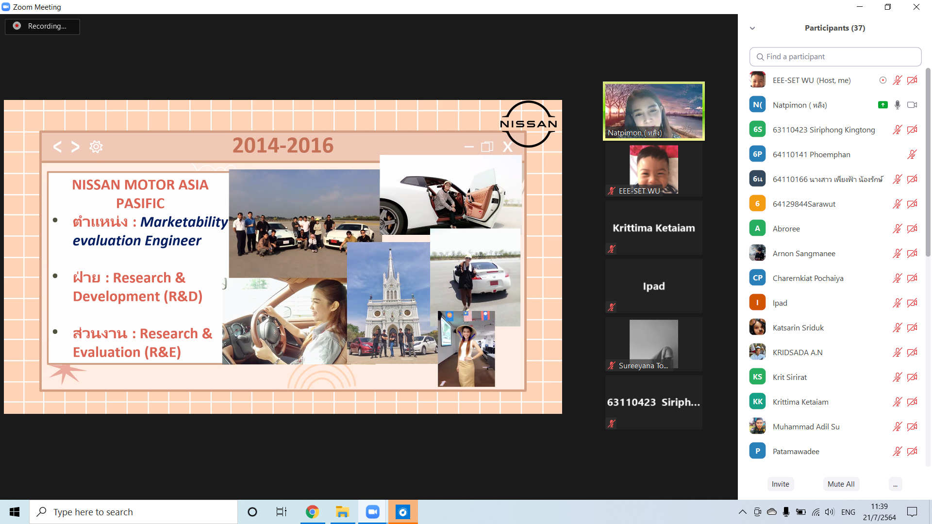 ในวันพุธ ที่ 21 กรกฏาคม 2564 หลักสูตรวิศวกรรมไฟฟ้า เชิญวิทยากร คุณณัฐพิมล เนาวคุณ (ศิษย์เก่า) ปัจจุบันทำงานอยู่ที่ บริษัท นิสสัน มอเตอร์ จำกัด ได้บรรยายพิเศษ ในหัวข้อ …”เส้นทางการเรียน สู่เป้าหมาย”…ให้แก่นักศึกษาในหลักสูตร ซึ่งการเลือกและหาวิธีการให้ไปถึงเป้าหมายของแต่คนละคนก็ย่อมแตกต่างกัน และแรงบันดาลใจเป็นปัจจัยหนึ่งที่จะช่วยเป็นเสมือนแรงผลักดันในชีวิต ให้ตัวเราเองกล้าที่จะก้าวผ่านสิ่งต่างๆได้อย่างมั่นคงมากขึ้น และวิทยากรได้ให้แง่คิดว่า