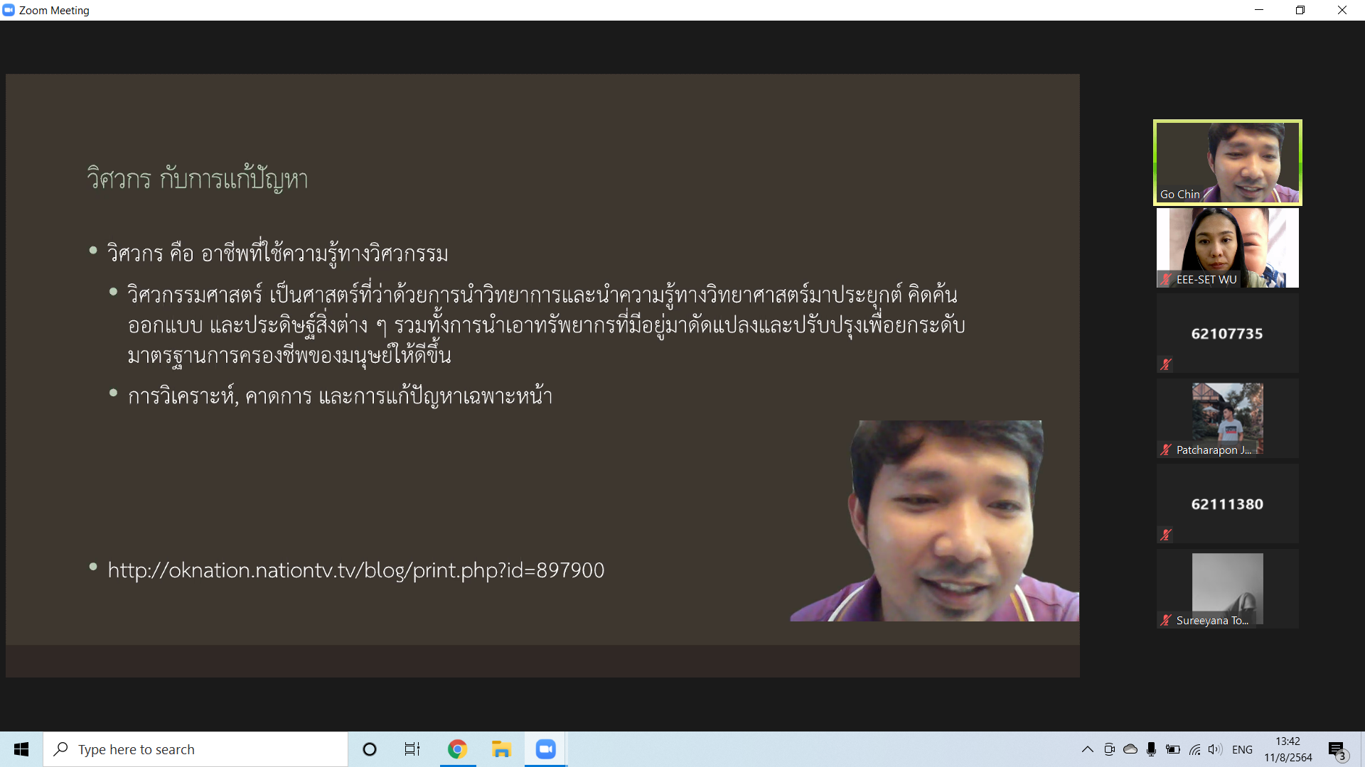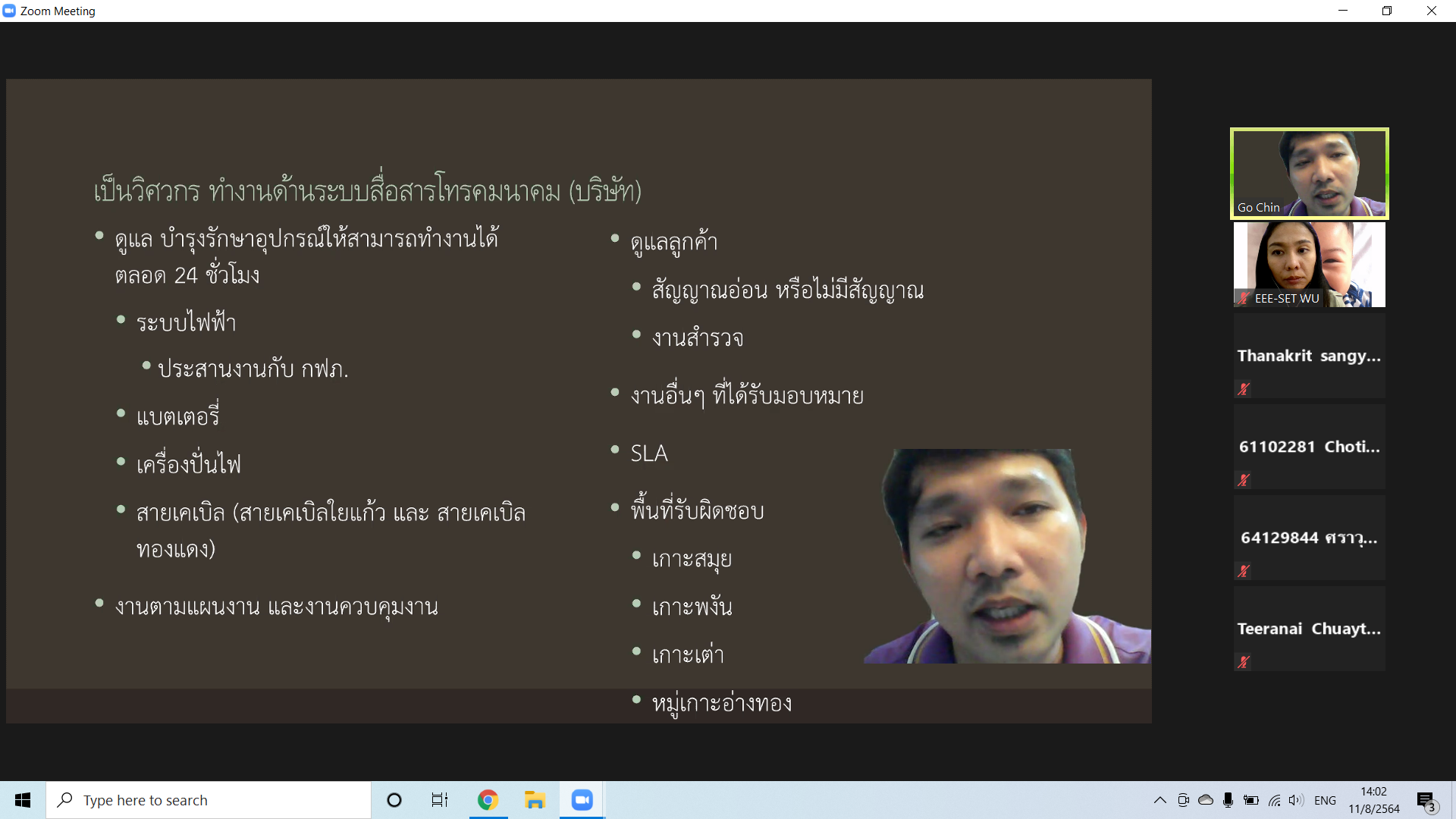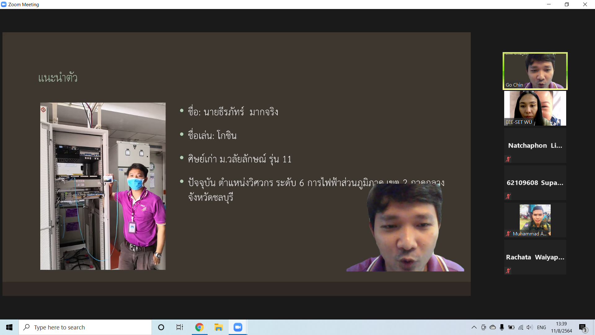 ในวันพุธ ที่ 11 สิงหาคม 2564 เวลา 13.00-16.00 น. หลักสูตรวิศวกรรมไฟฟ้า เชิญวิทยากร คุณธีรภัทร มากจริง ศิษย์เก่า รุ่น 11 ปัจจุบันทำงานในตำแหน่งวิศวกร ระดับ 6 การไฟฟ้าส่วนภูมิภาค ได้บรรยายพิเศษ ในหัวข้อ …”วิศวกรไฟฟ้ากับงานด้านระบบสื่อสารโทรคมนาคม”…ให้แก่นักศึกษาในหลักสูตร