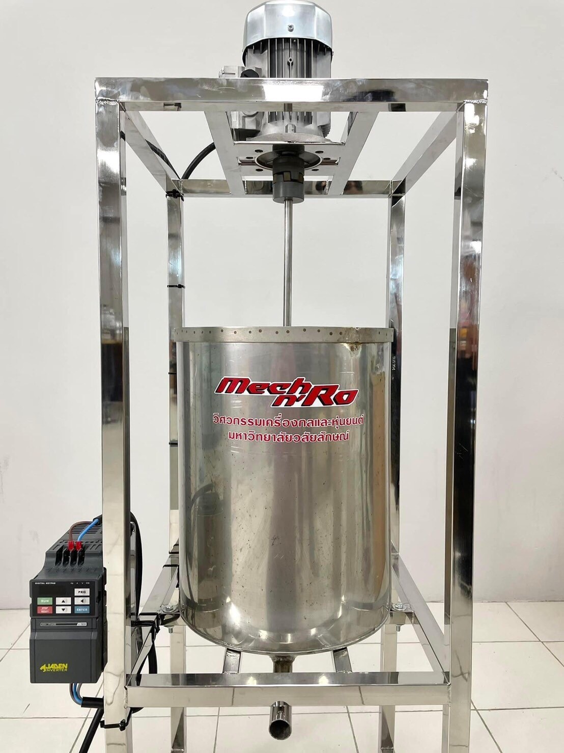 เครื่องผสมน้ำยางพาราได้ถูกออกแบบและสร้างโดยคณาจารย์สาขาวิชาวิศวกรรมเครื่องกลและหุ่นยนต์ ร่วมกับเจ้าหน้าที่สหกรณ์กองทุนสวนยางบ้านหนองครก จำกัด เพื่อใช้ผลิตเสาจราจรบอกทาง โดยมีเป้าหมายเพื่อเพิ่มกำลังการผลิตให้ได้มากกว่า 1 ต้นต่อนาที เครื่องผสมน้ำยางพาราได้ถูกออกแบบให้สามารถใช้งานได้ง่าย การดูแลรักษาทำได้สะดวก และมีต้นทุนการผลิตที่ไม่สูง สำหรับเครื่องผสมน้ำยางพาราที่ได้ส่งมอบในครั้งนี้เป็นเครื่องต้นแบบที่ทางผู้ออกแบบและสร้างได้ทดลองนำไปใช้งานในสถานประกอบการจริงเพื่อใช้เก็บข้อมูลสำหรับการพัฒนาต่อยอดและปรับปรุงประสิทธิภาพของเครื่องผสมน้ำยางพาราในอนาคต
