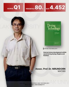 5. รศ.ดร.นิรันดร มาแทน สาขาวิชาปิโตรเคมีและพอลิเมอร์ วารสาร Drying Technology, Q1 ซึ่งมีค่าเปอร์เซ็นต์ไทล์ที่ 80 และค่า ISI Impact factor 4.452