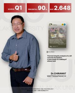 2. รศ.ดร.ทนงศักดิ์ อิ่มใจ สาขาวิชาวิศวกรรมโยธา และอาจารย์ ดร.ชิระวัฒน์ วัฒนพานิชย์ สาขาวิชาวิศวกรรมคอมพิวเตอร์และอิเล็กทรอนิกส์ วารสาร Buildings, Q1 ซึ่งมีค่าเปอร์เซ็นต์ไทล์ที่ 90 และค่า ISI Impact factor2.648