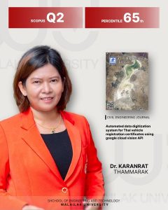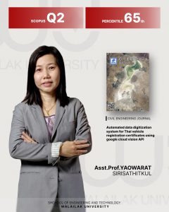 1. อาจารย์ ดร.กรัณรัตน์ ธรรมรักษ์ และ ผศ.เยาวเรศ ศิริสถิตย์กุล สาขาวิชาวิศวกรรมคอมพิวเตอร์และอิเล็กทรอนิกส์ วารสาร Civil Engineering Journal, Q2 ซึ่งมีค่าเปอร์เซ็นต์ไทล์ที่ 65