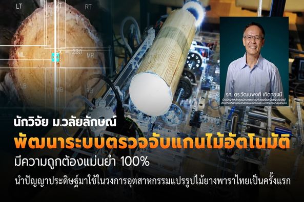 รองศาสตราจารย์ ดร.วัฒนพงศ์ เกิดทองมี และผู้ช่วยศาสตราจารย์ กรกต สุวรรณรัตน์ นักวิจัยจากหลักสูตรวิศวกรรมคอมพิวเตอร์และปัญญาประดิษฐ์ สำนักวิชาวิศวกรรมศาสตร์และเทคโนโลยี มหาวิทยาลัยวลัยลักษณ์ วิจัยและพัฒนาระบบตรวจจับแกนไม้บนภาพหน้าตัดท่อนซุงไม้ยางพารา โดยใช้เทคนิคโครงข่ายประสาทเทียมแบบลึก เพื่อเชื่อมต่อกับระบบในโรงงานแปรรูปไม้ยางพารา ช่วยลดปริมาณการสูญเสียไม้ยางพาราจากการอบ จากกระบวนการตัดไม้ที่ติดแกนหรือไส้ไม้ได้เป็นจำนวนมาก โดยขณะนี้งานวิจัยดังกล่าวได้รับการตีพิมพ์ในวารสารนานาชาติในฐานข้อมูล Scopus Q1 แล้ว และเตรียมต่อยอดพัฒนาเป็นระบบตรวจจับโรคตาเขในมนุษย์