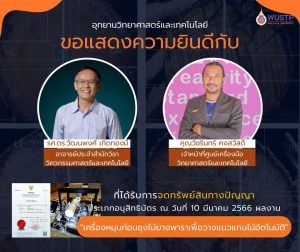 สำนักวิชาวิศวกรรมศาสตร์และเทคโนโลยี มหาวิทยาลัยวลัยลักษณ์ ขอแสดงความยินดีกับ รศ.ดร.วัฒนพงศ์ เกิดทองมี อาจารย์ประจำสำนักวิชาวิศวกรรมศาสตร์และเทคโนโลยี และคุณวัชรินทร์ คงสวัสดิ์ เจ้าหน้าที่ศูนย์เครื่องมือวิทยาศาสตร์และเทคโนโลยี ที่ได้รับได้รับการจดทรัพย์สินทางปัญญาประเภทอนุสิทธิบัตร เรื่อง เครื่องหมุนท่อนซุงไม้ยางพาราเพื่อวางแนวแกนไม้อัตโนมัติ ในวันที่ 10 มีนาคม 2566