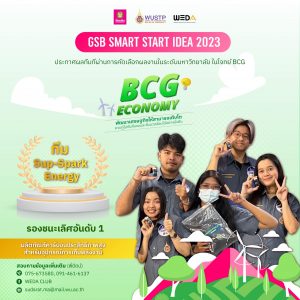 สำนักวิชาวิศวกรรมศาสตร์และเทคโนโลยี ขอแสดงความยินดีกับนักศึกษาหลักสูตรวิศวกรรมไฟฟ้า หลักสูตรปิโตรเคมีและพอลิเมอร์ และหลักสูตรวิสวกรรมเคมีและเคมีเภสัชกรรม คว้ารางวัลจากการประกวดสินค้าหรือบริการต้นแบบ (Prototype) ภายใต้กิจกรรม Smart Start Idea ซึ่งมีทุนสนับสนุนจากธนาคารออมสิน “BCG ECONOMY” พัฒนาเศรษฐกิจอย่างไรให้สามารถเติบโตควบคู่ไปกับสังคมและสิ่งแวดล้อมได้อย่างยั่งยืน โดยผ่านการคัดเลือกในระดับมหาวิทยาลัย จำนวน 3 ทีม ซึ่งนักศึกษาสำนักวิชาวิศวกรรมศาสตร์และเทคโนโลยี คว้ารางวัลจำนวน 2 ทีม โดยนำเสนอผลงานผ่านโปรแกรม ZOOM วันที่ 18 พฤษภาคม 2566 ประกอบด้วยนักศึกษา ดังนี้