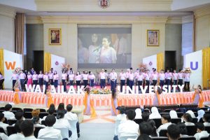 ทั้งนี้ก่อนการกล่าวปฐมนิเทศนักศึกษาใหม่อย่างเป็นทางการ อธิการบดีและคณะผู้บริหารได้ร่วมกันโชว์ขับร้องบทเพลง “รักวลัยลักษณ์” เพลง “เกียรติภูมิวลัยลักษณ์”และดับเบิ้ลยู ยู ซึ่งเป็นเพลงประจำมหาวิทยาลัย พร้อมทั้งการบรรยายพิเศษหัวข้อ “ตาน้ำแห่งความรู้และ AI ในศตวรรษที่ 21” โดยรองศาสตราจารย์ ดร.นิรันดร มาแทน อาจารย์ประจำสำนักวิชาวิศวกรรมศาสตร์และเทคโนโลยี รับฟังการบรรเลงบทเพลงประจำมหาวิทยาลัย จากชมรม WU Band และการแสดงจากชมรมนาฏศิลป์ด้วย