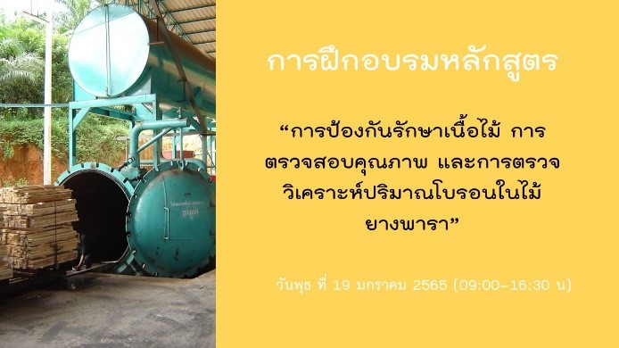 การอบรมเน้นความรู้เบื้องต้นเกี่ยวกับไม้ยางพารา การเสื่อมสภาพของไม้ยางพาราอันเนื่องจากสิ่งมีชีวิต การป้องกันรักษาไม้ยางพาราด้วยสารประกอบโบรอน รวมถึงการตรวจสอบปริมาณสารออกฤทธิ์ในไม้ที่ผ่านการอัดน้ำยาเข้าไปในเนื้อไม้